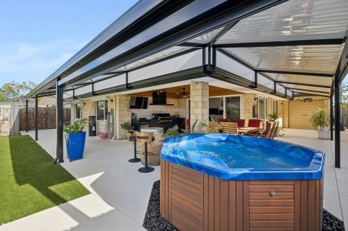 Surrounded by low-maintenance tropical gardens, and supported by bore reticulation, this outdoor space offers both beauty and practicality in equal measure.