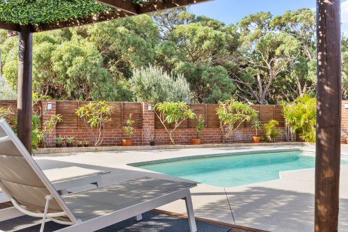 The sparkling resort-style pool, framed by beautifully finished honed aggregate surrounds, creates a luxurious outdoor setting perfect for entertaining family and friends.