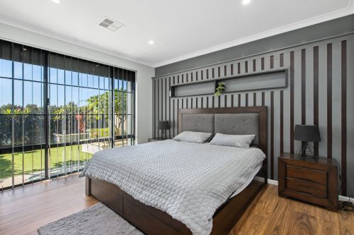 Retreat to the opulent master suite, where you’ll find a walk-in robe and a showpiece ensuite featuring double vanities, stone tops, and an indulgent walk-in double shower. A beautiful feature wall adds warmth and luxury to this private sanctuary.