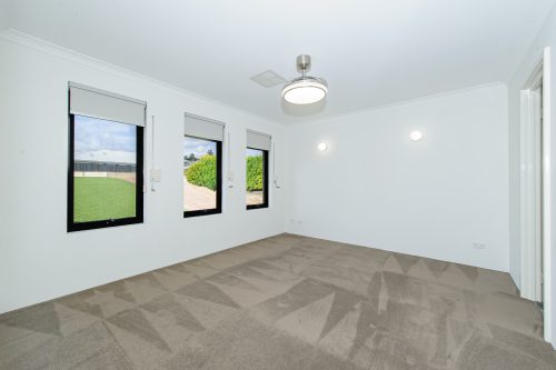 • master bedroom is a king size with roller shutters, walk in robe, ceiling fan/light combo and walk in robe